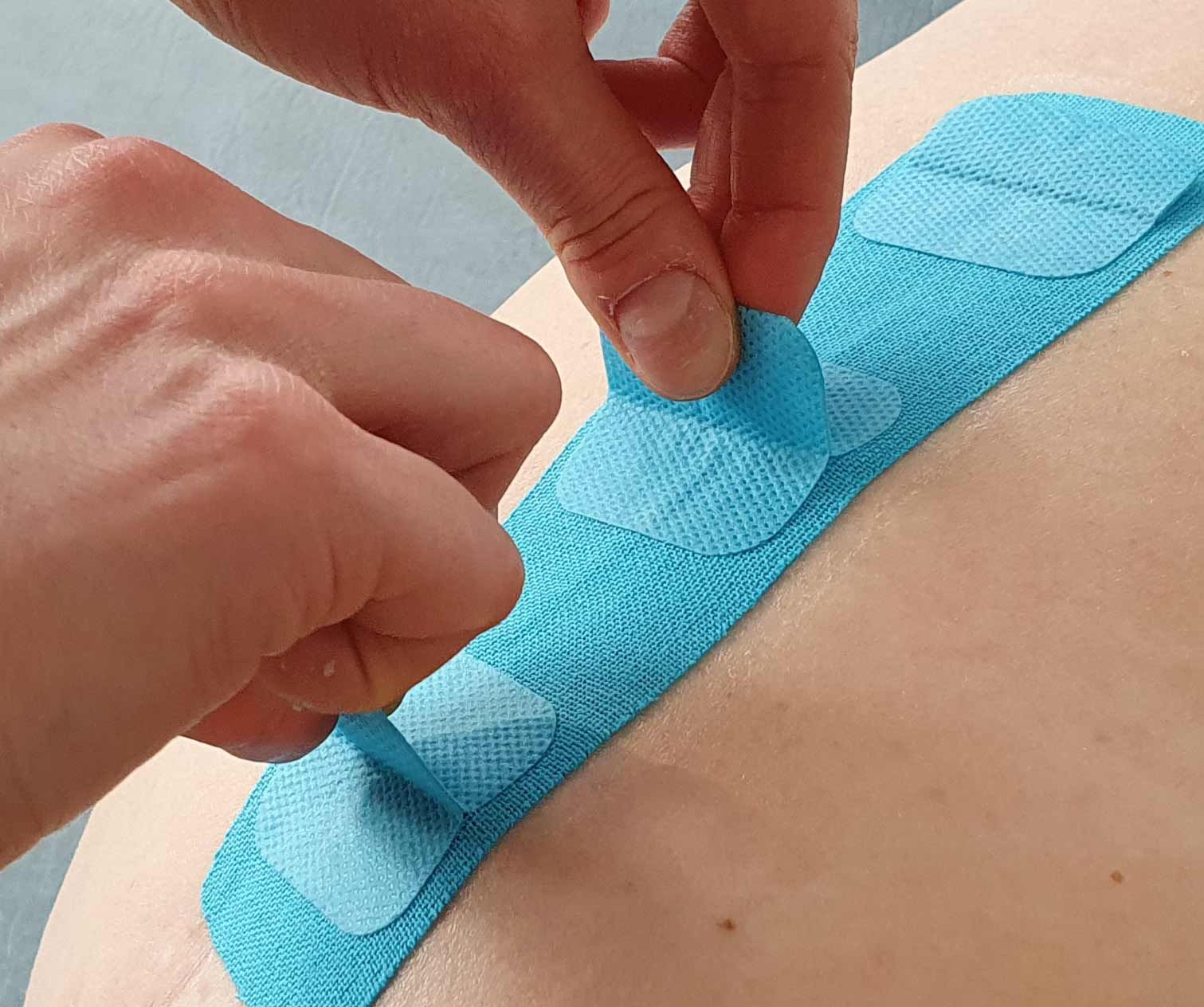 - Lymfakierron vilkastaminen ja turvotuksen vähentyminen – teippi ”nostaa” ihoa ja luo enemmän tilaa lievittäen näin painetta ja lymfaattista tukosta. Se myös ohjaa lymfanesteitä haluttuun suuntaan